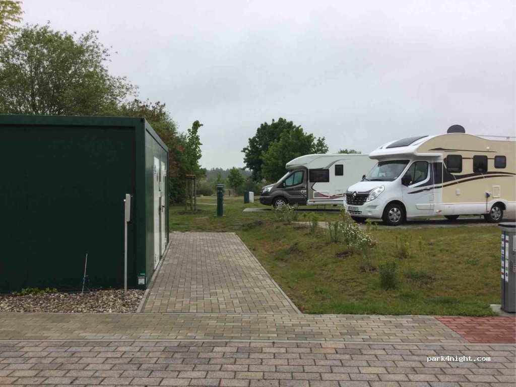 En route vers la Pologne nous avions décider de faire étape dans cette aire. L' espace est bien défini et suffisant. Il y a un évier avec de l eau chaude pour faire la vaisselle mais le reste des services est payant. Pour l électricité on ne paye alors que ce qu'on consomme (comme beaucoup de camping en Allemagne) Donc 18 € pour passer une nuit calme et reposante est honnête.