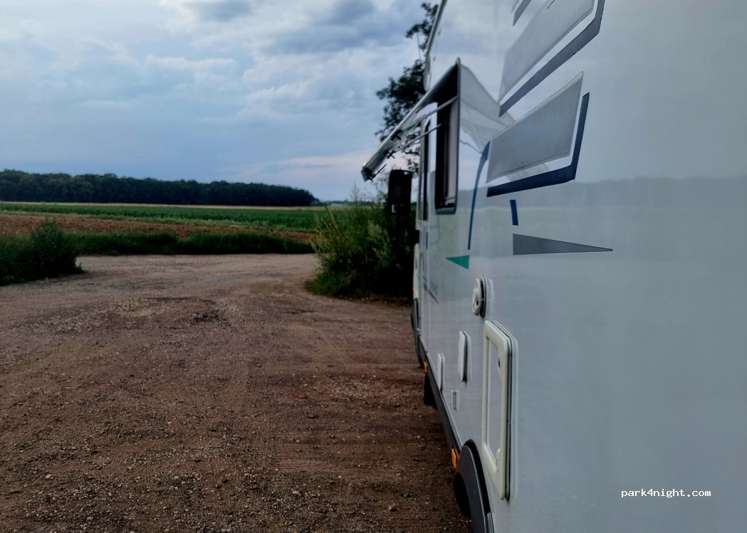 Great little parking spot,quiet, with a lovely view over the fields. we were the only ones there overnight. there were farmers working the fields but not loud at all. even treated to a hot air balloon flyover. The odd car travelling the small road behind but really quiet.