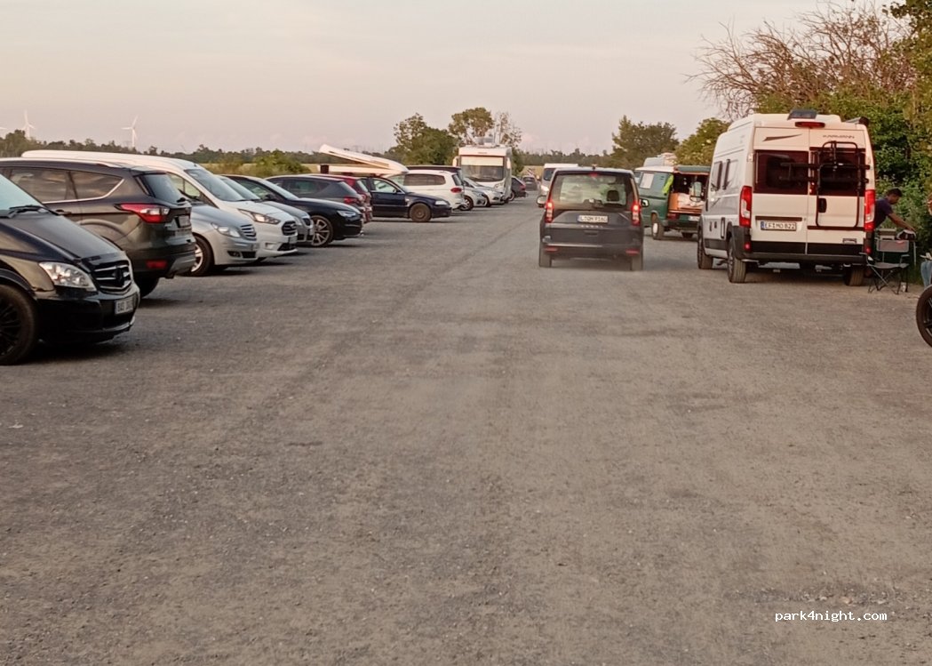 Free large parking. If anyone is interested if you stay here with the camper, unfortunately I do not know. 15 minutes beautiful paved walk to the Schladitzer bay (at the bay parking costs money)