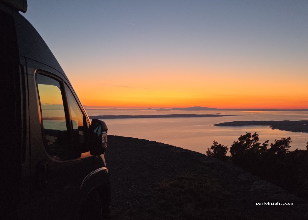 Amazing view. Slept here one night. Road is very small with wider parts from time to time. No problem for our ford transit. There was only one other camper with us there. Night was very calm, only 4-5 cars passed on the road.
