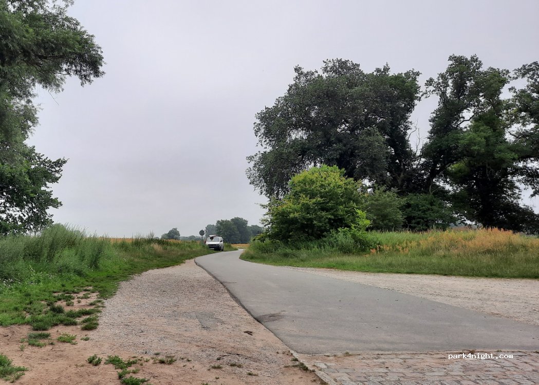 Parkplatz für 1 Fahrzeug auf der linken Seite der Straße. Nicht im Wendebereich oder an der Rampe parken, weil dieser Bereich Naturschutzgebiet ist. Sehr ruhig und umgeben von Wiesenlandschaft.