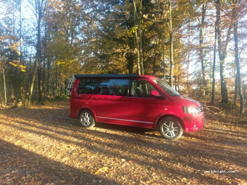 Einzelner Stellplatz ca 50m im Wald nahe der Landstraße.