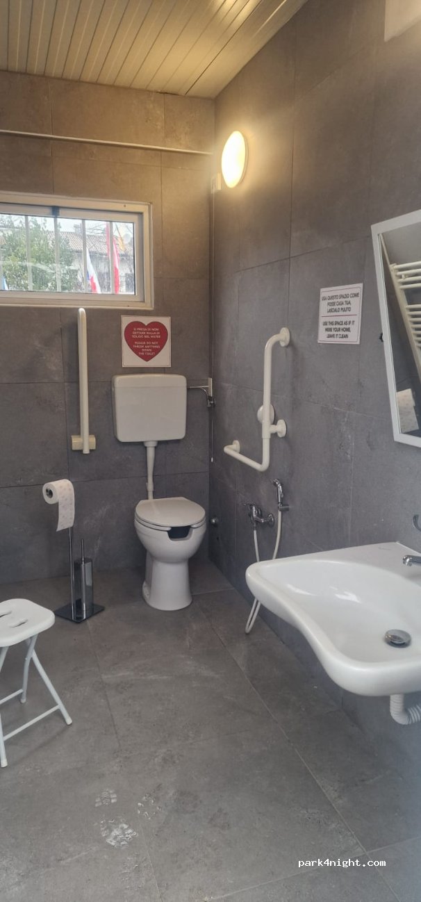 Area automatizzata con tessera da restituire al termine del soggiorno per recuperare la cauzione (5€). Docce a pagamento. Toilet chiuse / non utilizzabili. Comoda per raggiungere a piedi il centro.