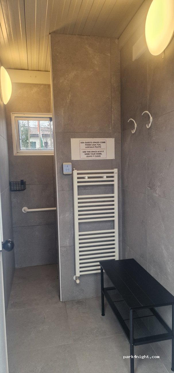 ottima area sosta con tutti i servizi, pulita e automatica...complimenti ho utilizzato sia la corrente che la doccia...la doccia con acqua calda e ambiente riscaldato. e ampi spazi per cambiarsi all'interno