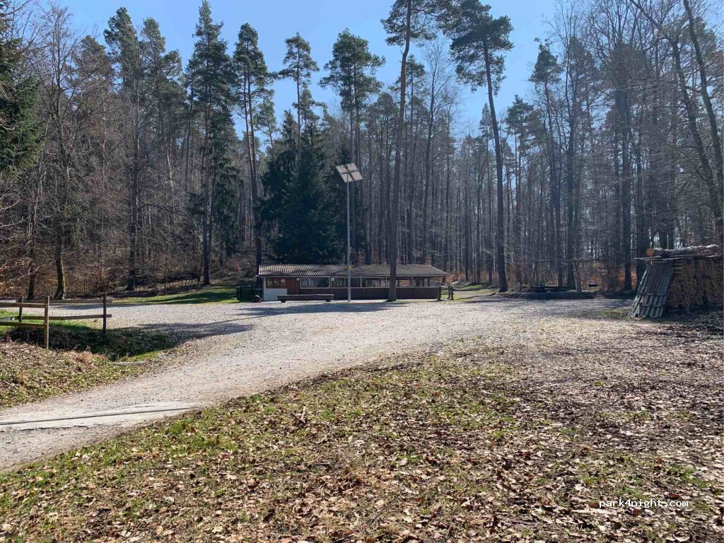 Super Platz ! Grosszügige Parkmöglichkeiten, gerader Kiesplatz. Waldhütte ohne Service, dafür Grillstelle und Spielplatz. Wanderer und Velofahrer sind unterwegs aber in der Nacht sehr ruhig und tolle Waldwege zum erkunden.