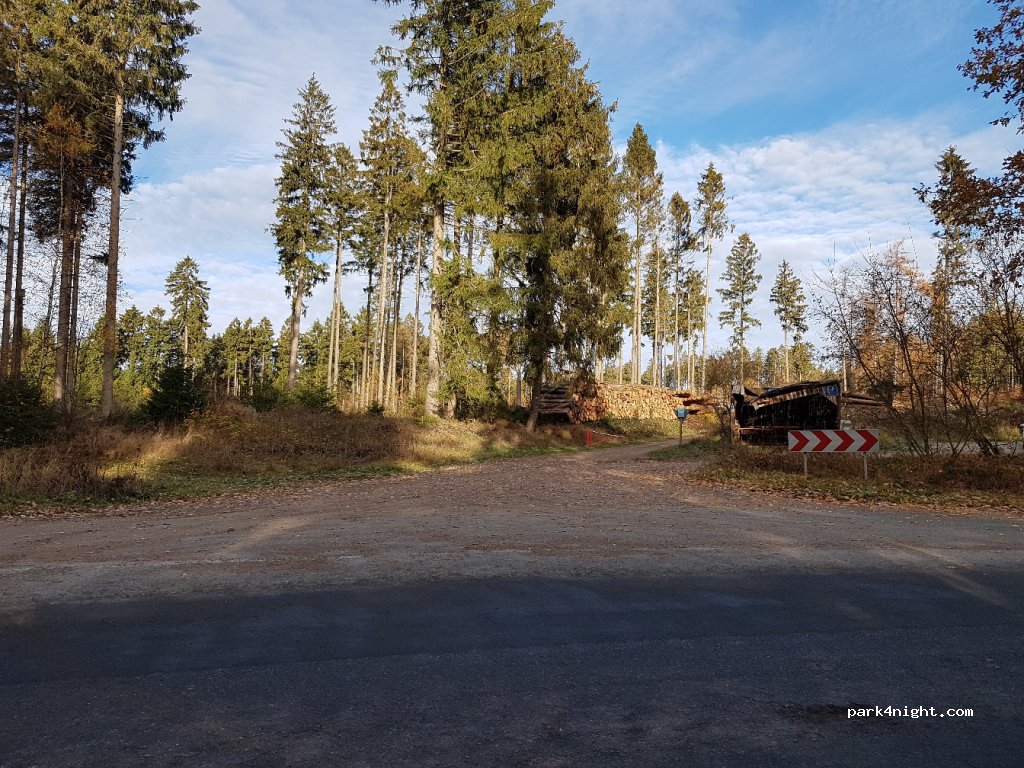 Kleiner Parkplatz im Wald an einer wenig befahrenen Straße. Kaum Schatten, sehr uneben. Habe hier eine angenehme und ruhige Nacht verbracht.