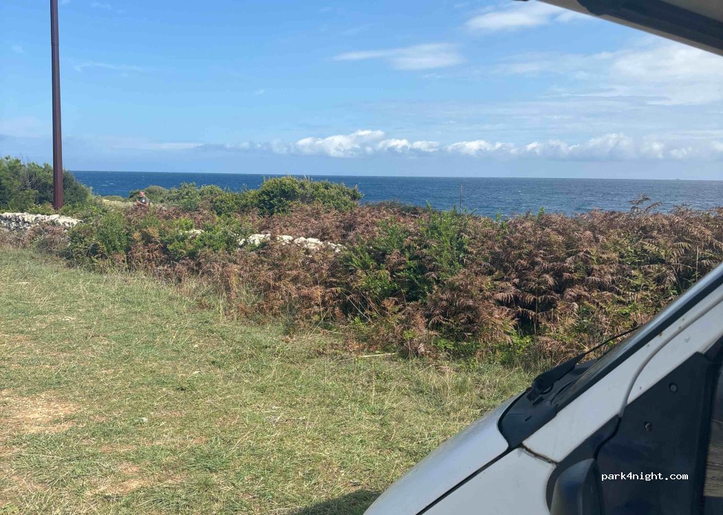 Oltre 100metri dalla posizione segnalata ,proseguire verso il mare , spazio per diversi mezzi su erba sopra la falesia , ci sono sentieri lungo la falesia che portano a San Andrea ,le due sorelle e Roca Vecchia .