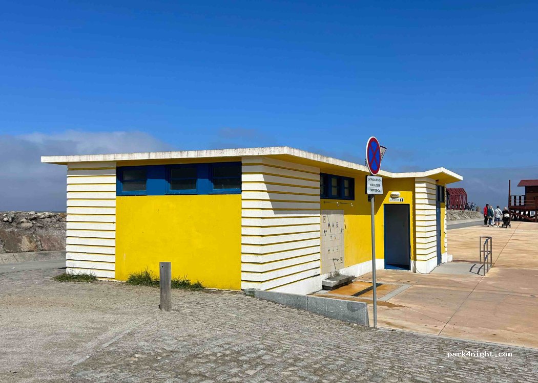 Perfect place to park up right behind the beach and have free private (and warm!) shower inside the blue building at the north end of the large parking... :)