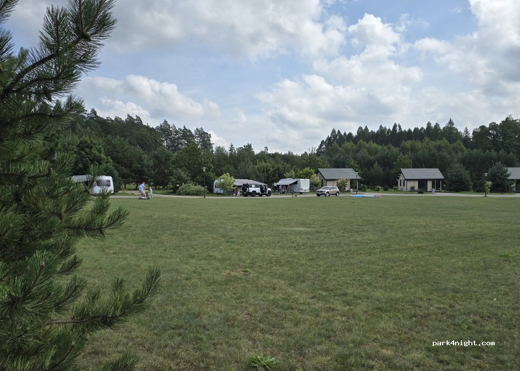 Einfacher videoüberwachter Stellplatz mit modernen und sauberen Sanitäranlagen. Es gibt auch Mietbare Ferienhäuser und ein Wellnesshotel mit Restaurant auf dem Areal. Sehr schön mitten in der Natur gelegen.