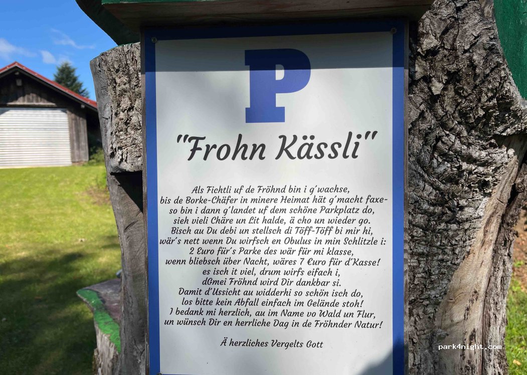 Sehr schöne ruhiger Platz. Parken geht an Wanderparkplatz unter den Bäumen perfekt. Fast eben. Unter der Woche nichts los. Dass man nicht direkt an der Hütte parken sollte müsste eigentlich jeden verantwortungsvollen WoMo Fahrer bewusst sein!