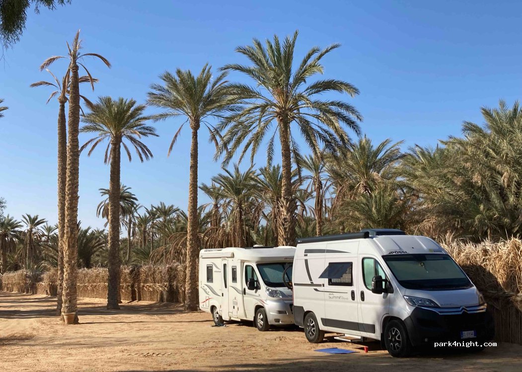 Tout près du centre ville, idéal pour les courses en séjour prolongé et sous les palmiers de l'oasis. Accueil sympa, douches chaudes, restauration possible, le wi fi est un peu lent mais a le mérite d'exister.