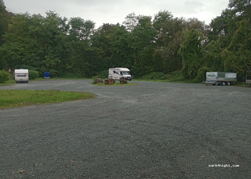 Für eine Nacht perfekt. Schotterplatz mit genügend Platz. Direkt am der Lahn. Mülleimer vorhanden.