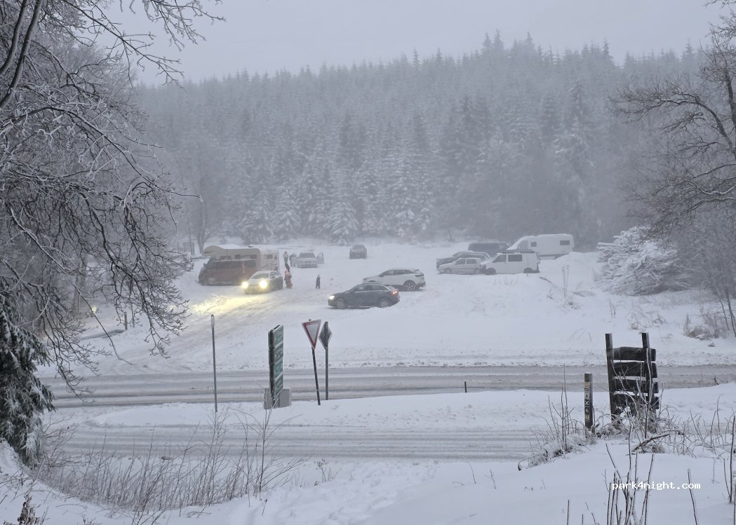 Ich war mit meinem Dachzelt dort und nahm an ein ruhiges Plätzchen gefunden zu haben. Ab 20 Uhr bis 03:00 früh gab es allerdings keine Möglichkeit zu schlafen. Der Parkplatz wurde alle halbe Std. durch Fahrzeuge befahren die den Platz zum Donut drehen im Schnee nutzen. Ich denke in der Woche wird das anders aussehen aber an einem Freitag Abend oder Samstag Abend würde ich den Platz meiden.