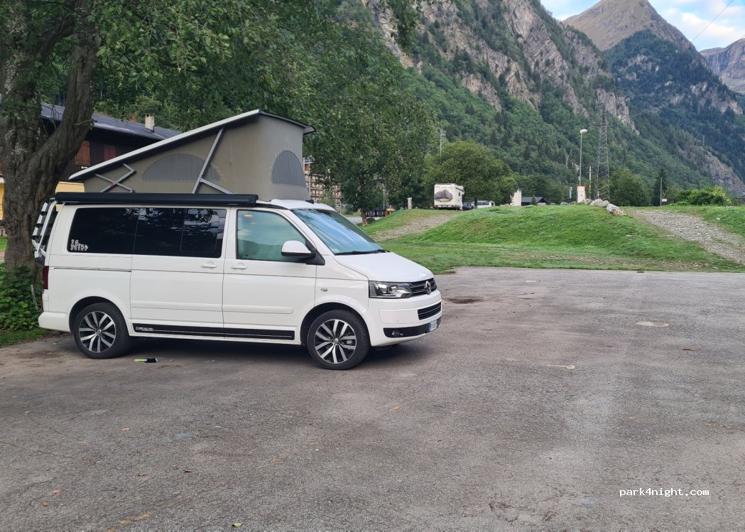 Ottima area di sosta. In paese disponibile navetta x Alagna. Ultima navetta del giorno alle 16.40. Dall'area c'è percorso ciclo pedonale che poeta in paese. Circa 3.5km. Scarico e carico a pagamento .