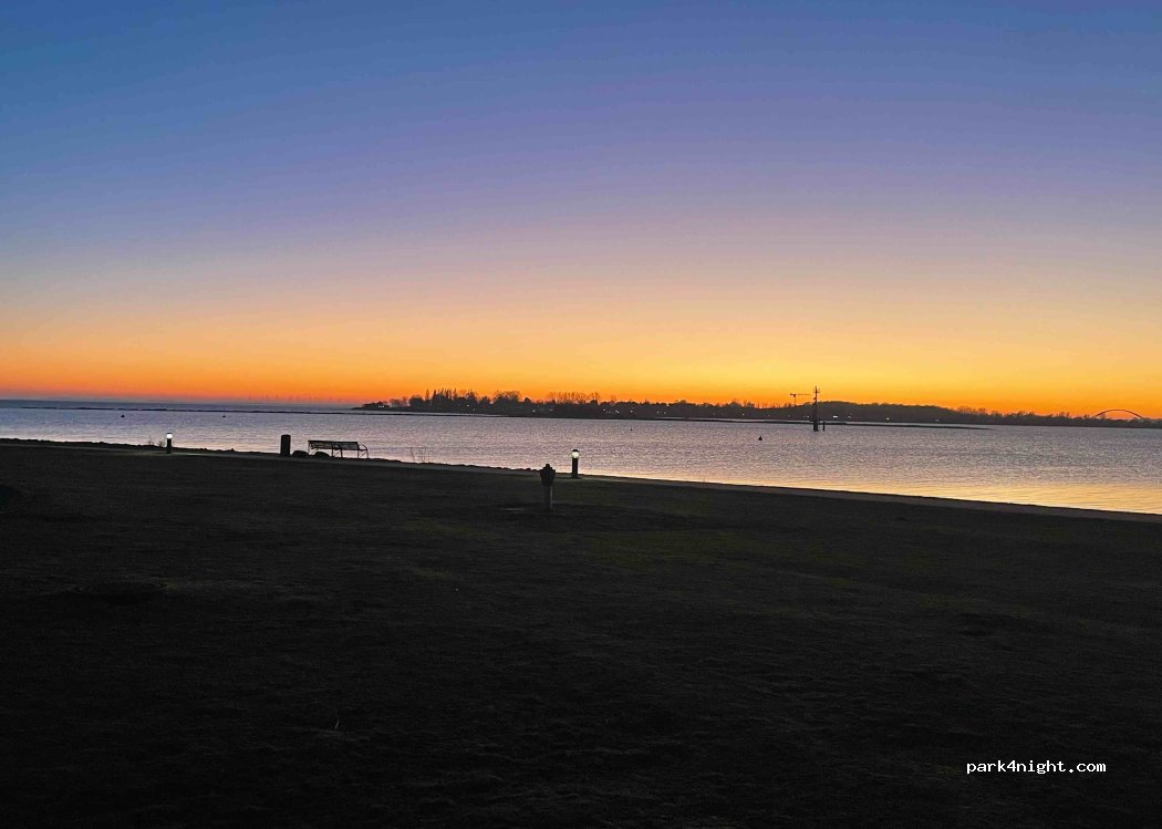 Schöner Platz mit tollem Blick auf den Sonnenuntergang. Gute Möglichkeit für einen Spaziergang am Wasser. Toiletten waren in direkter Nähe, offen und sauber! Auch ein kleiner Kiosk, bei dem man auch Brötchen holen kann, war in direkter Nähe.