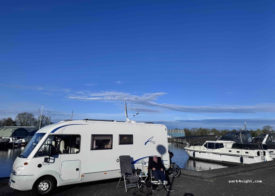 In einer Kehre am Ende des Yachthafens stehen 5 Stellplätze zur Verfügung. Ohne Strom €18. Tolle Lage direkt am Wasser, absolut ruhig.