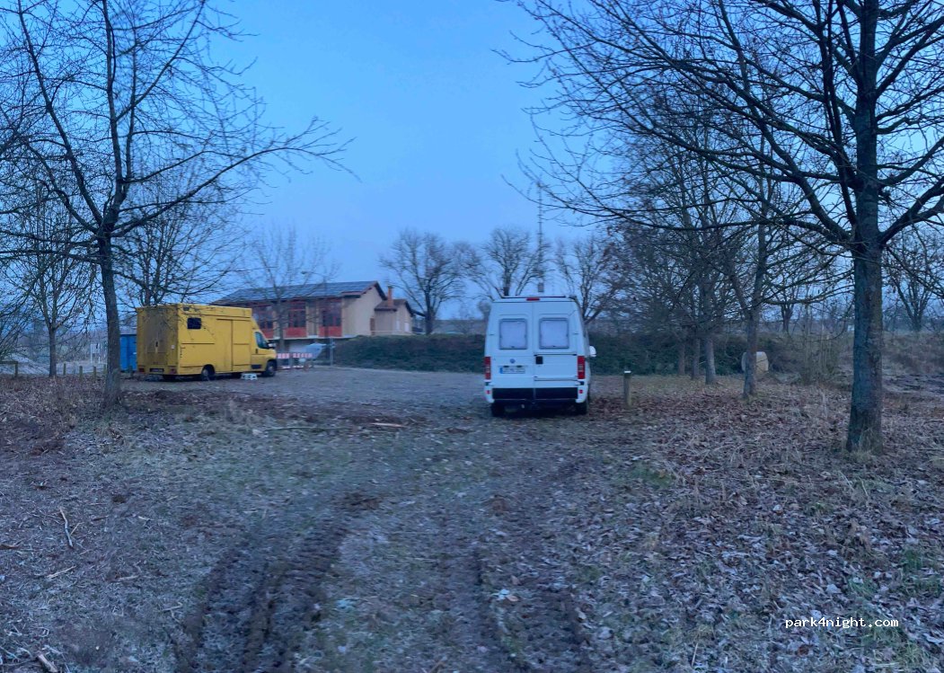 Schöner und ruhiger Stellplatz. Kostenlos und ohne Service... Nebenan ist eine Sport-Gaststätte... Für eine Nacht immer gut...