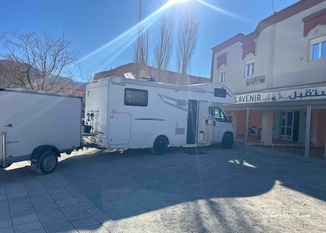 Ein toller Platz direkt vor der Auberge. Alles ist super sauber. !!! Tagsüber etwas Verkehr, da direkt an der Straße gelegen - Nachts total ruhig. Tankstelle, Geldautomat, Restaurants, Einkaufen - alles in der Nähe erreichbar. Dusche(warm) und Toilette dürfen in der Auberge benutzt werden. (die sauberste Sanitäranlage die ich seit Monaten hier in Marokko gesehen habe) !!! ANSONSTE EMPFEHLUNG.