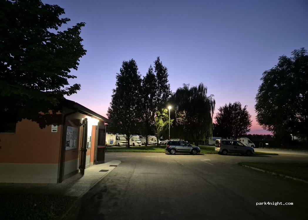 Accueil très sympa. Un petit papi très agréable. Aire de stationnement sécurisé par un portail (vous devez sonner pour qu'on vous ouvre) avec tous les services. Blocs sanitaire super propres. Salle avec TV, distributeur de boissons et café, Wifi gratuit. Au 23 août pas un chat, donc très calme. Piste cyclable jusqu'à Modène qui est à 4 km. Grand centre commerciale et galerie marchande à 5 mn. Comptez 15 €/ jour tout compris.