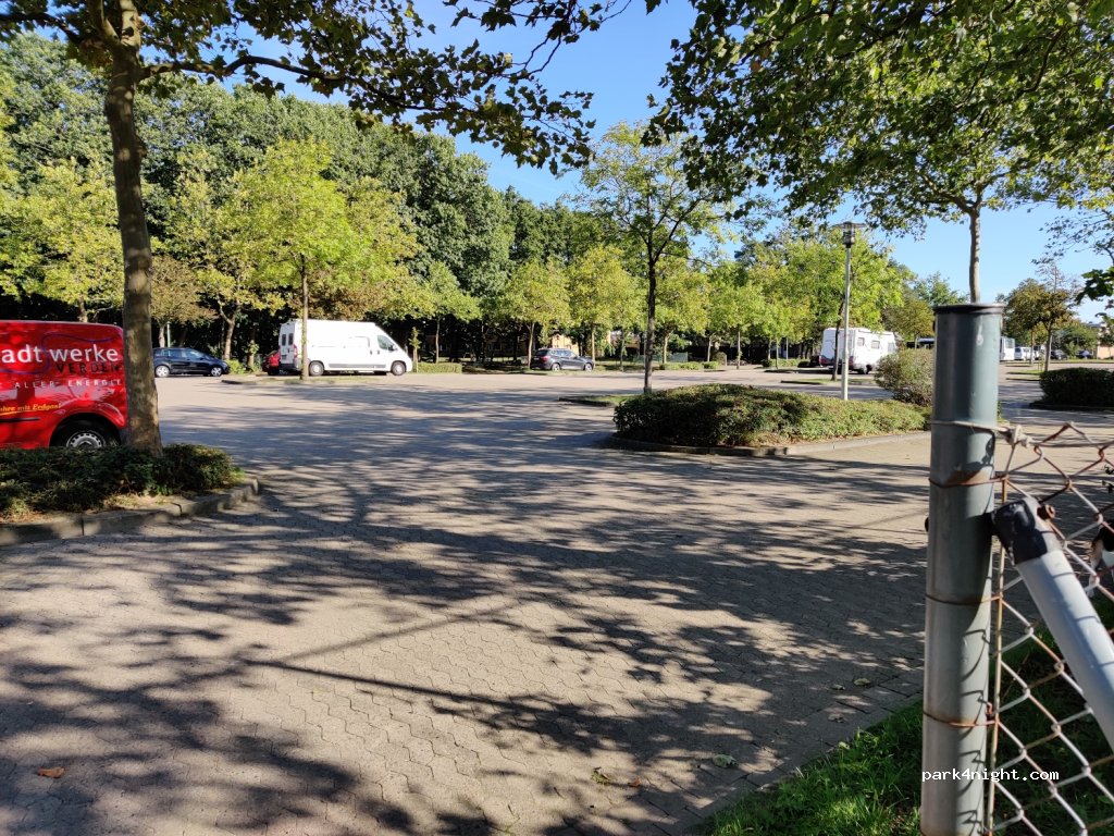 Großer Parkplatz am Schwimmbad des Verwell. Direkt daneben ein Kletterpark und Fußballplatz. Etwas weiter weg von der Innenstadt. Lidl gut zu Fuß erreichbar und Bäcker direkt gegenüber. Nachts auch ziemlich ruhig.