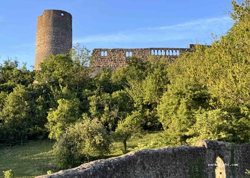 Auch zu später Stunde genug Platz. Wir standen ebenfalls wundervoll seitlich mit Blick auf die Ruine. Der Tipp mit der kleinen Bäckerei war ebenfalls super, die Anfahrt mit Blick auf die Burg war sehr schön. Danke für diesen Moment.