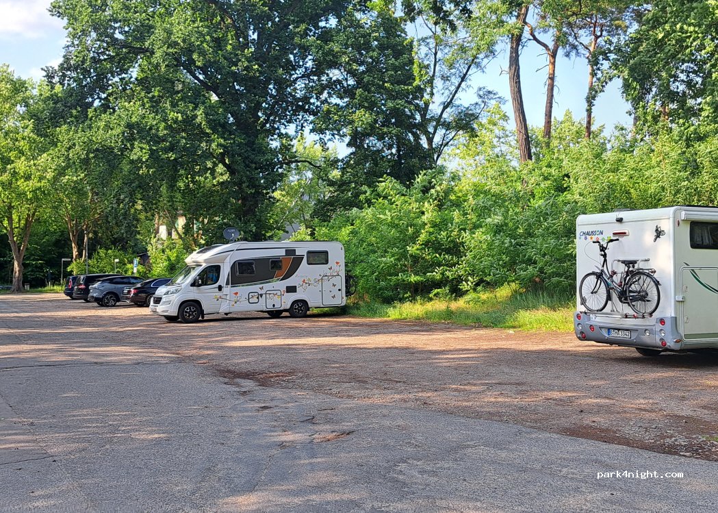 Petit parking pour une ou plusieurs nuits, sans limite de temps. Peut être utilisé comme point de départ pour des voyages en train vers Berlin (gare à 10 minutes à pied), pour des balades à vélo dans les environs ou pour une visite au lido...