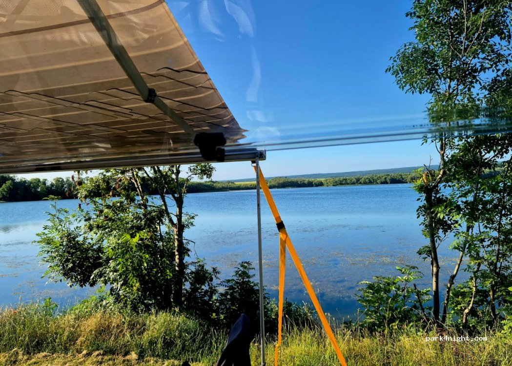 Sehr schöne Aussicht auf den See. Wer Natur und Ruhe mag, ist hier genau richtig. Die Premiumplätze direkt am See kosten jetzt 14 €. pro Person bezahlt man 8 € und für Strom nochmal 3 €. Nur die vorderen Plätze verfügen über einen Wasseranschluss. Die Duschen und Toiletten waren bei unserem Besuch immer sauber. Den Stern Abzug wegen dem erheblichen Preisaufschlag.