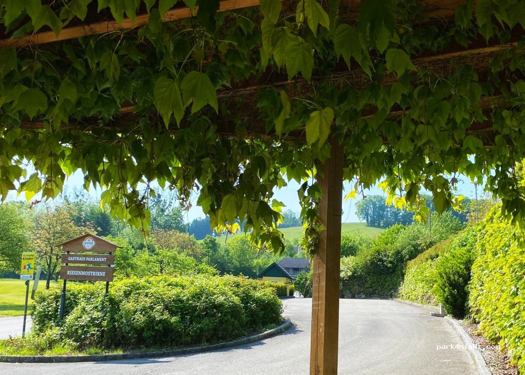 Molto tranquillo di notte perché la taverna è aperta solo a mezzogiorno fino al tardo pomeriggio. Pera da sidro gigante di Mostviertel davanti alla porta. Situato direttamente sulla pista ciclabile del Danubio. L'uso del parco giochi della locanda è consentito durante l'orario di apertura.