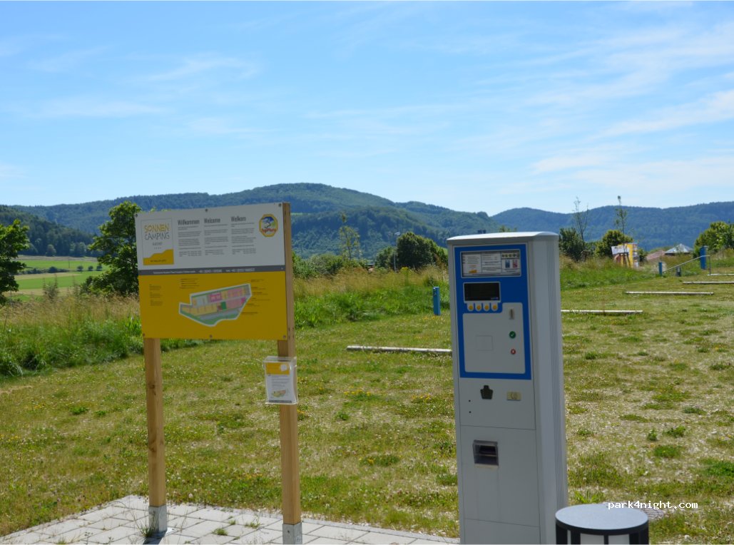 Feb 2019 - This campground has recently been expanded (SonnenCamp) and now offers a full range of parking and amenities based on a tiered pay structure (see photo for menu). The cheapest option is 12€/night, which gets you a nice gravel pad and coin op electricity and water, along with grey water dump. We upgraded to a structure that gave us full access to all the other facilities - WC, showers, laundry, kitchen, chem toilet dump, common room, bike storage, and ping pong. We found the staff to be very friendly and the facilities were brand new and very clean. The camp store is open from 9-12 and then again for three hours in the evening and has discount tickets to the adjacent Badkap Spa, which was great for families.