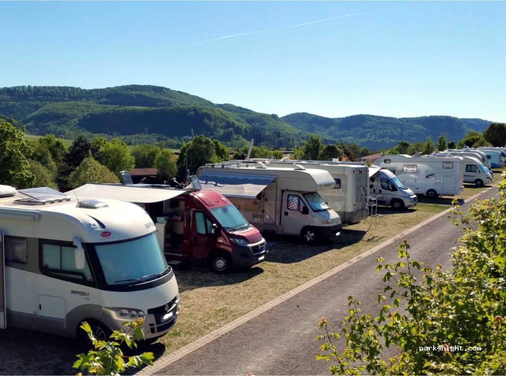 Großzügige Stellplätze mit schönem Blick. Aber kein Schatten und Südhang, welches an heißen Sommertagen wie den letzten gut überlegt sein will, ob dies der ideale Stellplatz ist. Zudem nahe an der Straße gelegen und damit sehr laut.