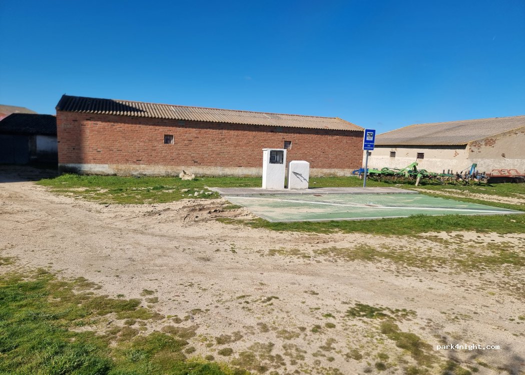 sitio muy tranquilo para dormir, pasamos una noche súper tranquila. el servicio de agua es de pago desde el 30 de abril. sin plazas delimitadas. detrás del polideportivo. ojo si llegas de noche con el cruce de animales en la carretera.