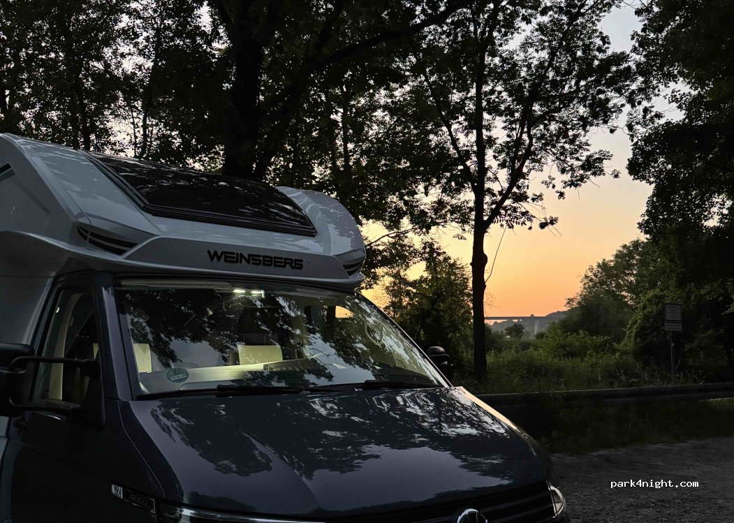 Parking au bord de la route un peu de passage la journée mais la nuit c'est calme. 4g au max. Belle balade au bord du Danube