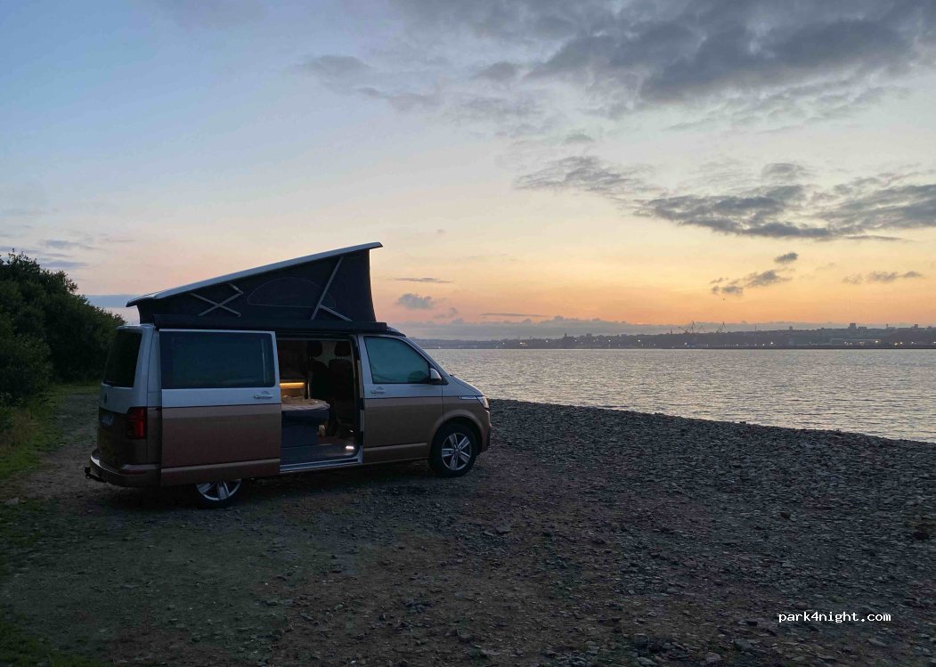 Seulement pour les vans car route très étroite en épingle pour y accéder et pas de possibilité de manoeuvre. On se partage le spot avec les windsurfers le soir et les pêcheurs le matin donc ne pas surcharger le site. C'est calme la nuit mais bien lumineux avec l'éclairage du port de Brest en face.