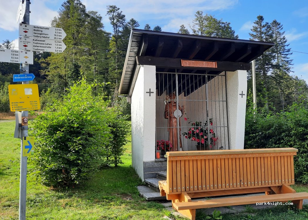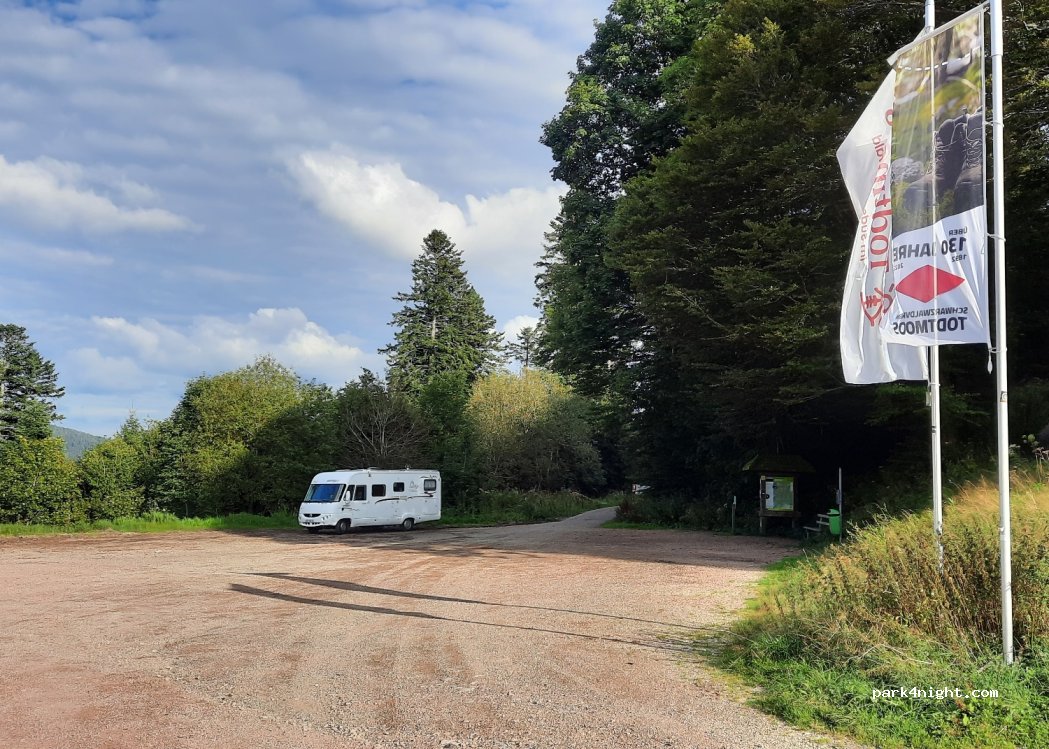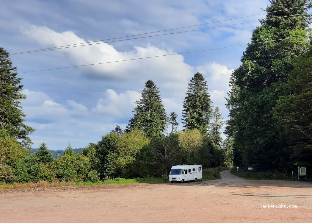 L'endroit est correct, bien dégagé mais c'est un lieu isolé, ce que certains redoutent pour passer la nuit sur ce genre de parking. Altitude 992 m, on respire... surtout après une ascension assez sévère compte-tenu des poids-lourds à croiser. Excellente base pour balader en forêt. TV-satellite depuis le bas du parking en bordure de route compte-tenu des arbres. Un coin nature sans plus !