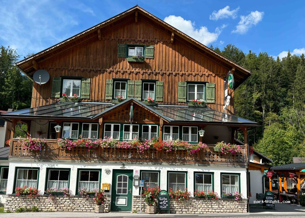 Gasthof Staud'nwirt, small, comfortable campsite near the Traun with only about 15 parking spaces. The reservation is only possible if you stay at least 9 days. Very good prices. The toilets are old but well maintained and clean.