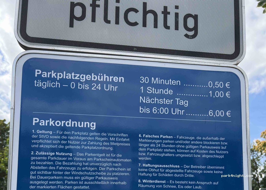 Für einen Stadtbummel völlig ausreichend. Wir standen von Donnerstag bis Freitag auf den Parkplatz. Die Schranken waren geöffnet, somit mussten wir nichts bezahlen. Die Nacht war ruhig, morgens ab halb 7 parkten die ersten Autos (ich denke, Mitarbeiter der Arbeitsagentur). Für große Wohnmobile nicht geeignet, da es "normale" Parkbuchten sind. Wir passten mit unseren 6 Metern gerade hinein :)