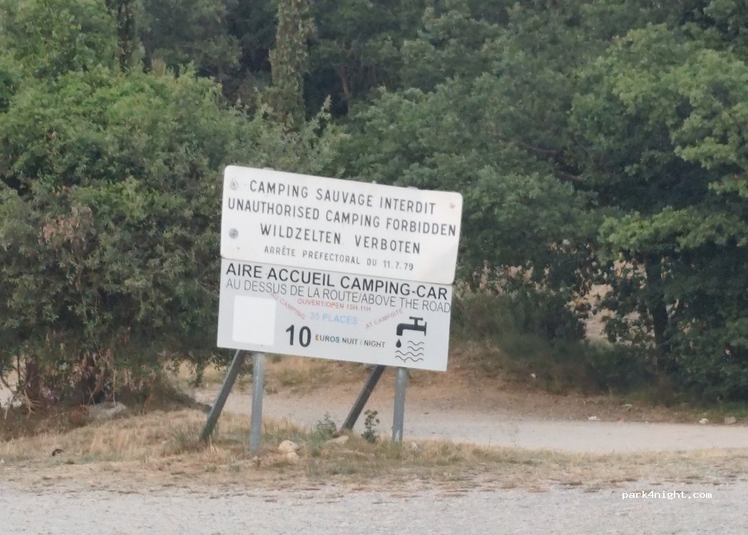 Kostenloser Parkplatz ohne Höhen - oder Längenbeschränkung. Haben hier geparkt während unserer Kanufahrt in die Verdonschlucht und während unseres Badeaufenthalts am See.