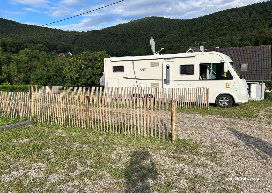 Parking of the old castle of Windstein. Quiet, but a bit sloping. In a beautiful little village. Access by small road but quite feasible even with a large motorhome.