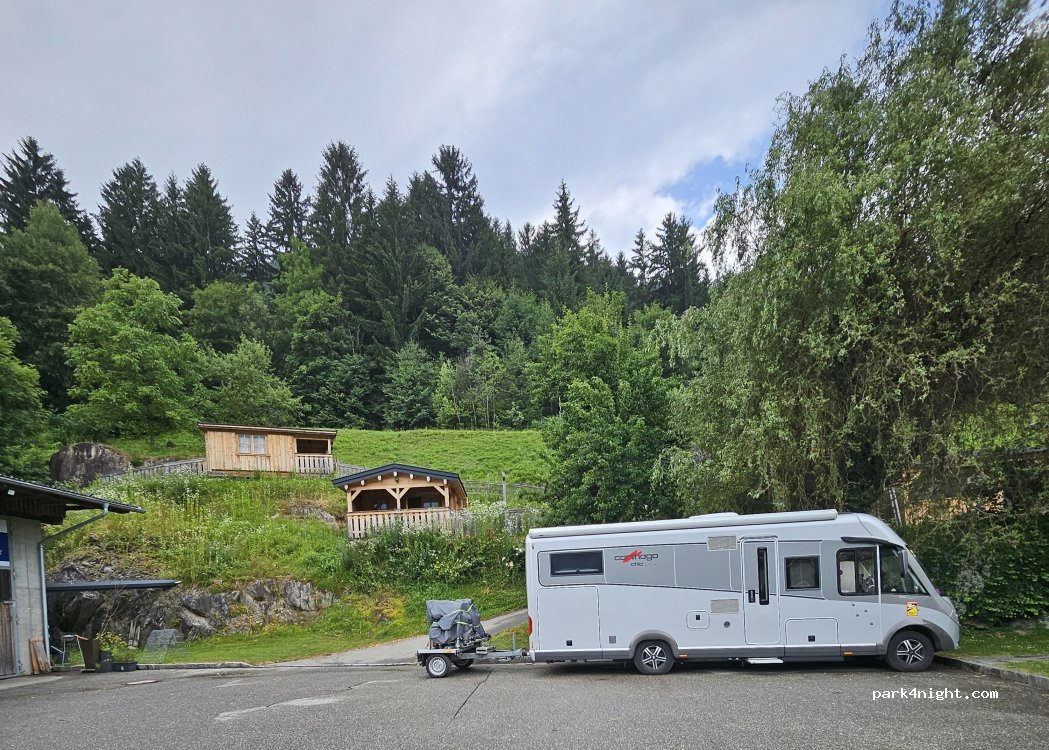 Car park with electric hookup for 2 in the gasthaus post pub car park. If you stop here definitely go inside for some food and a drink, they are very friendly and the food was amazing! children's park at the front of the pub and you can use there toilets. perfect spot for a overnight stop and some food.