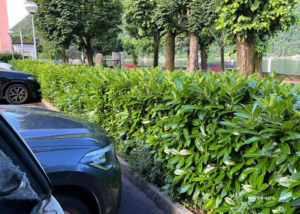 Parking payant la journée tout proche du lac. Idéal pour une pause au bord du lac. Ne convient pas du tout aux gros véhicules. Seulement aux vans courts. Aucun service.