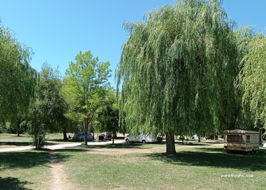 Grande prato con salici piangenti e qualche altra pianta. Piazzole grandi in erba. Personale cordiale e disponibile a farci restare oltre l'orario del check out. Servizi spartani, molto puliti. Ottimo punto di partenza per dei giri in bicicletta, specialmente per il tour delle creste del Verdon. Speso 15.40 per minivan e 2 persone.