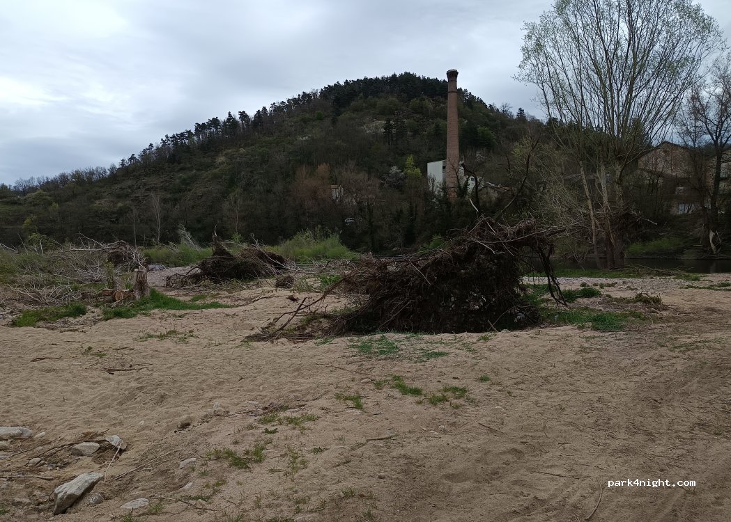 En effet on a vu un camping car faire demi tour au pont au Confolent = 2.3m de large. Quand au lieu, c'est rodéo ! Donc doucement et attention si c'est mouillé. Lieu potentiellement inondable. Barrage, panneau EDF à l'entree. On entend la nationale au loin. Place pour 3 ou 4 vans maximum. On a préféré le parking au Pont à Lignon, plus en hauteur et très tranquille aussi à côté du vieux campingcar