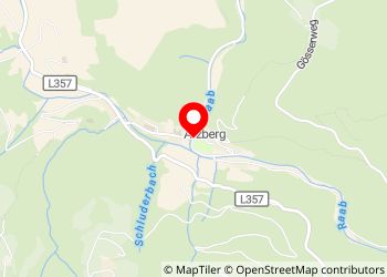 Departure of the "Raabklamm" hike. Very quiet, at the edge of the stream. Cheese shop 200m, restaurant 50m.