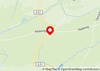 Parkplatz an der B81. Kostenlos mit Sitzbänken und Tischen. Gut zum übernachten geeignet. Kein Service