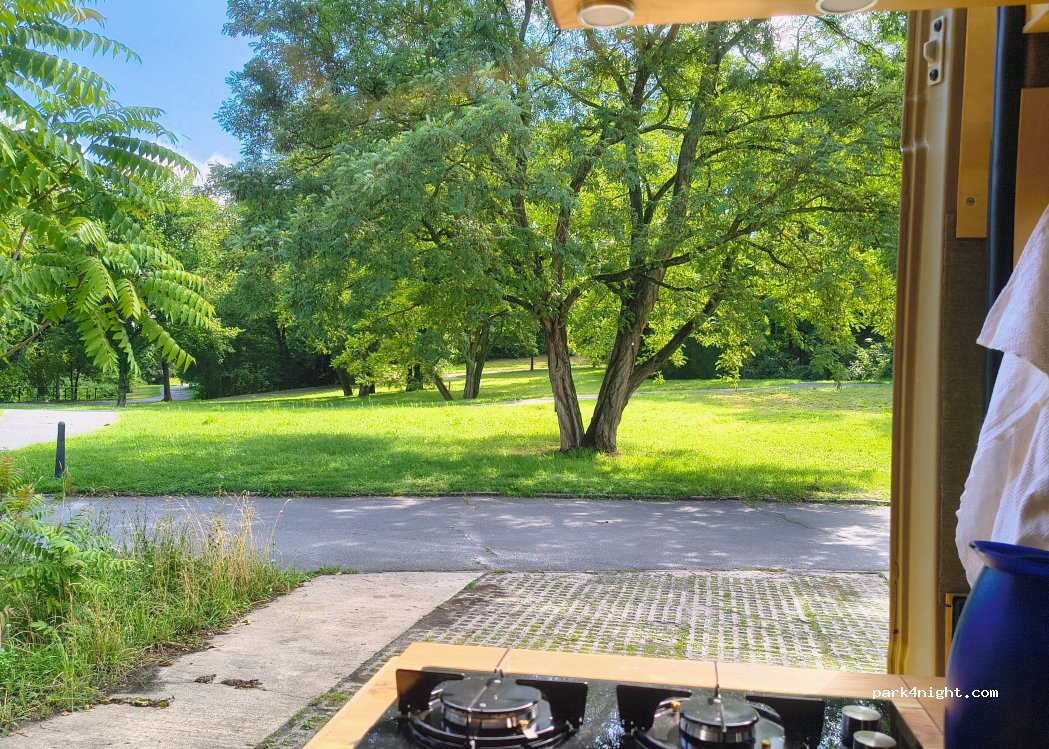 Normaler Parkplatz in einer Wohngegend. Waren auf der Durchreise. Haben nachts noch Platz gefunden. Ab 6:00 wurde es etwas unruhig aber nicht unangenehm. Für eine Nacht völlig ok.