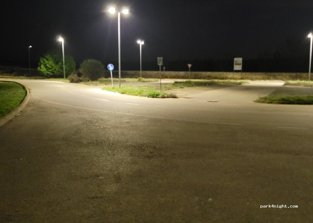 le parking est en contrebas de l église. Nous n y sommes pas restés car on ne s est pas sentis en sécurité. le bruit de la route qui s estompe peut etre dans la nuit et présence d une voiture qui faisait le tour plusieurs fois sur le parking. Peut dépanner car grand et plat