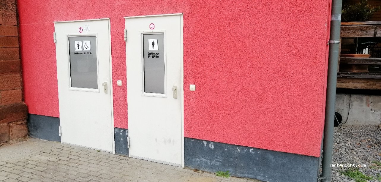 Bahnhof, Toiletten, geschotterter Platz, zeitweise Gaststätte in Betrieb, beleuchtet, ruhig bis auf Zugverkehr