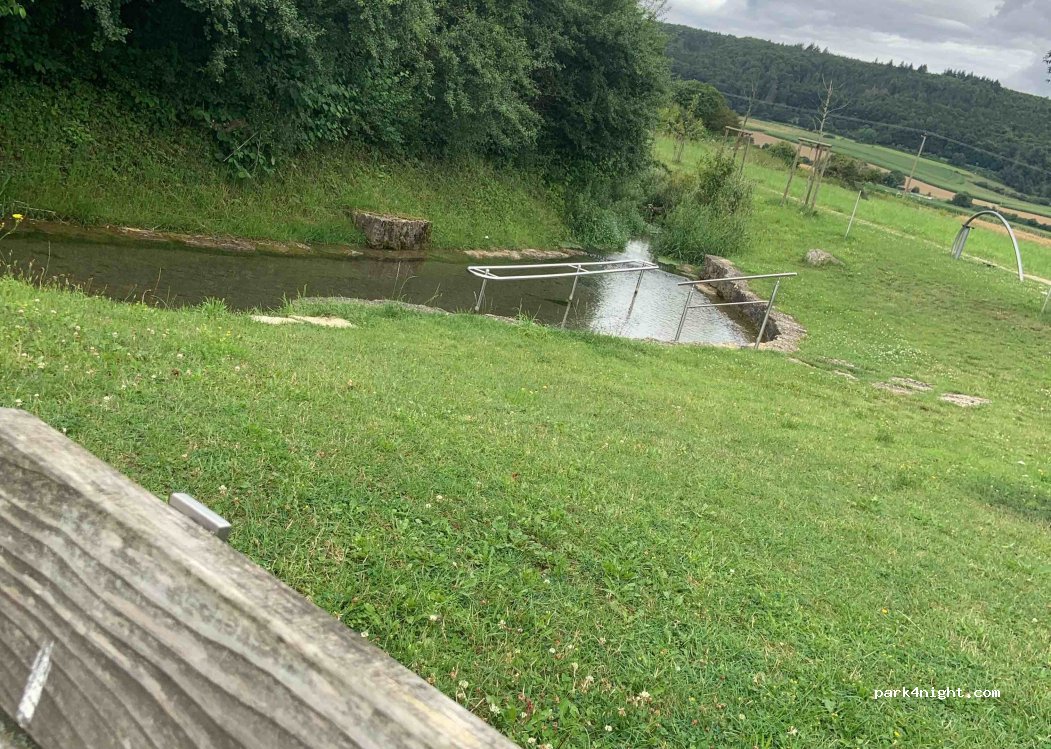 Schöner, eigentlich sehr ruhiger Ort… leider schlägt die nahe Kirchturmglocke alle viertel Stunde. Mit Ohrstöpseln aber auszublenden. Es gibt keinen Schatten. Und Hunde dürfen im Kneippbecken nicht gebadet werden ! :( ;) Haben dennoch eine sehr angenehme Nacht verbracht und waren die einzigen.