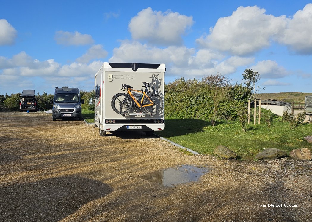 Beautiful spot with very friendly and helpful hosts. Fresh eggs in the morning. Toilets are closed due to COVID 19 ( 13.nov.20) but seen earlier this year and it’s realy clean and homie. Large parkings on Gras. Even in strong winds we had no problems and had a peaceful night
