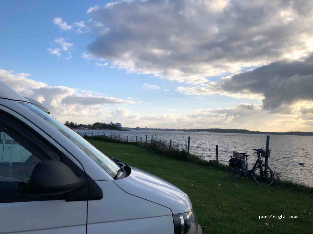 Schöner Platz super Lage und auch wenn man nicht in der ersten Reihe steht kann man sich schön ans Wasser setzen Habe mit Bulli 18 Euro die Nacht alleine bezahlt das ist für die Lage nicht teuer Essen ist lecker und preiswert und frisch gemacht. Etwas eigene Regeln aber ok nach Labor 10 Min mit dem Rad und in die andere Richtung schöner Strand ab der Förde